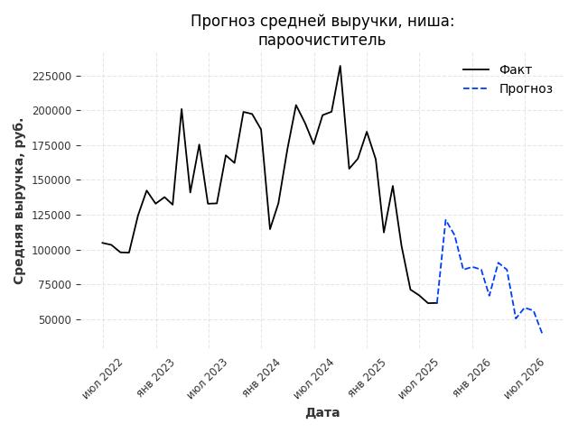 - Прогноз средней выручки на ближайшие 12 месяцев: 42884 руб./месяц