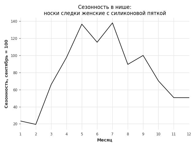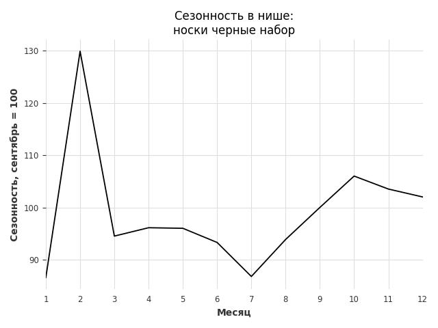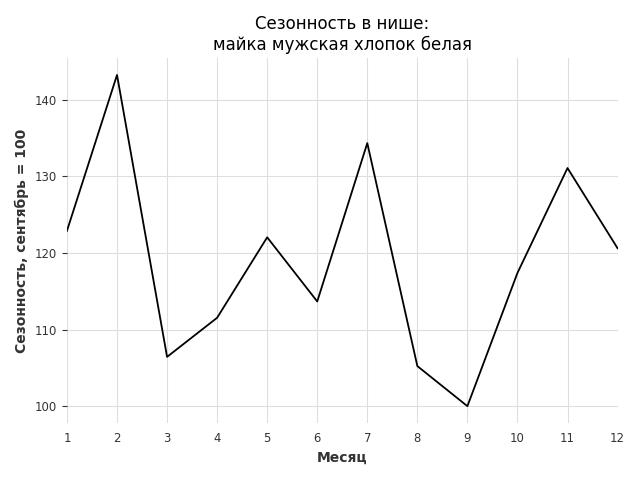 Сезонность в нише слабая. Пик сезонных продаж в нише - февраль. В ближайшие месяцы можно ожидать сезонного роста продаж до 31%.