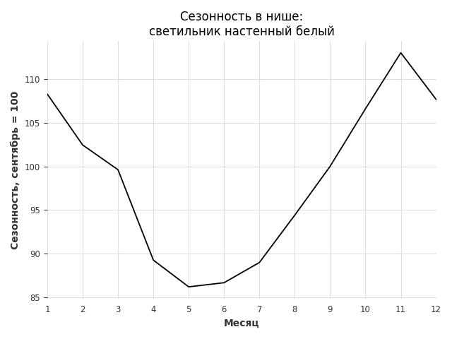 Сезонность в нише слабая. Пик сезонных продаж в нише - ноябрь. В ближайшие месяцы можно ожидать сезонного роста продаж до 16%.