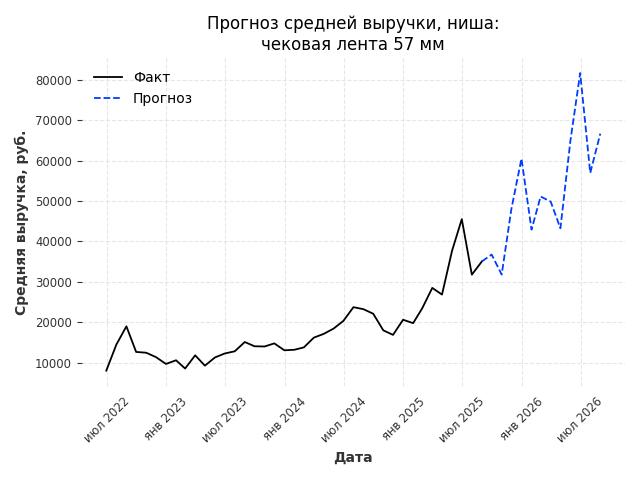 - Прогноз средней выручки на ближайшие 12 месяцев: 52881 руб./месяц