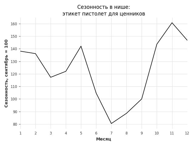 Сезонность в нише слабая. Пик сезонных продаж в нише - август. В ближайшие месяцы сезонность не будет заметно влиять на продажи.