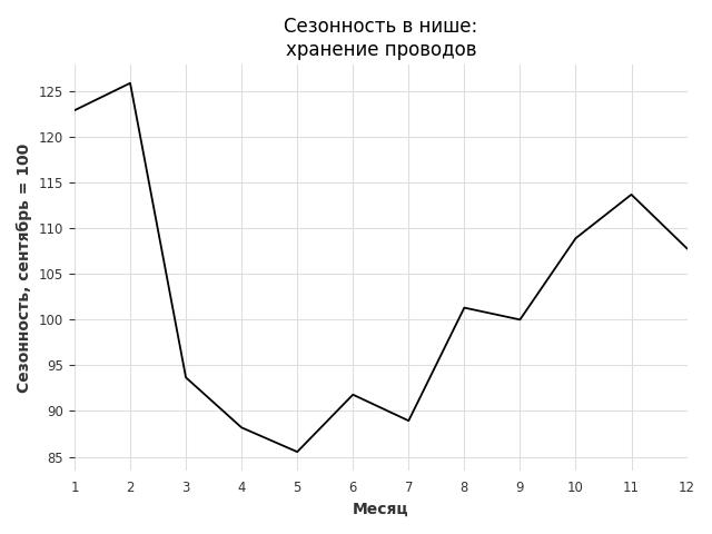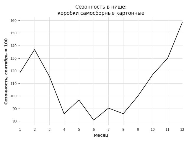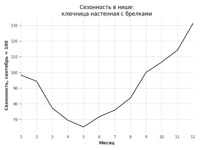Сезонность в нише слабая. Пик сезонных продаж в нише - февраль. В ближайшие месяцы можно ожидать сезонного роста продаж до 13%.