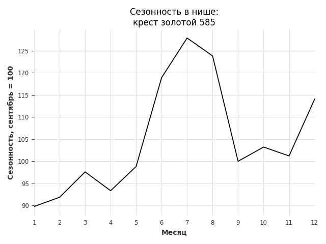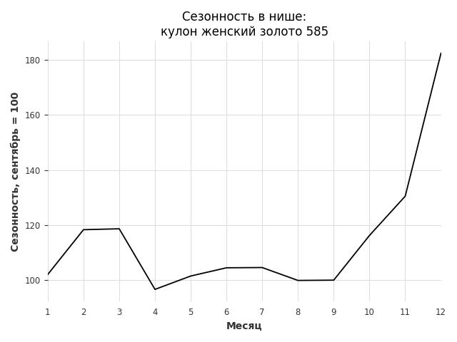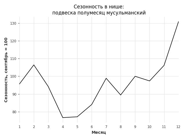 Сезонность в нише слабая. Пик сезонных продаж в нише - декабрь. В ближайшие месяцы можно ожидать сезонного роста продаж до 30%.