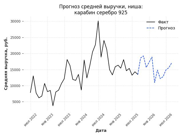 - Прогноз средней выручки в нише на следующие 12 месяцев: 15653 руб./месяц