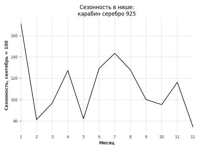Сезонность в нише средняя. Пик сезонных продаж в нише - январь. В ближайшие месяцы сезонность не будет заметно влиять на продажи.