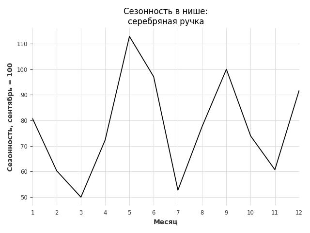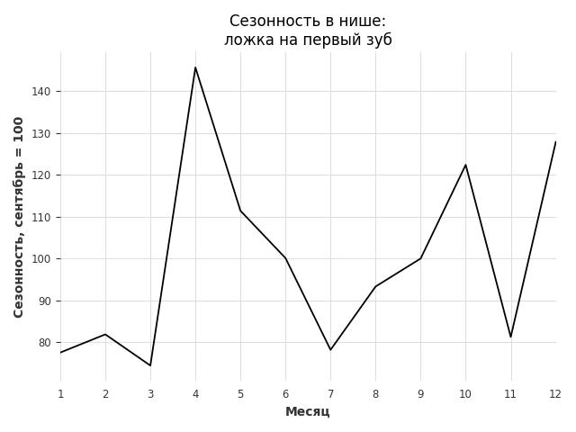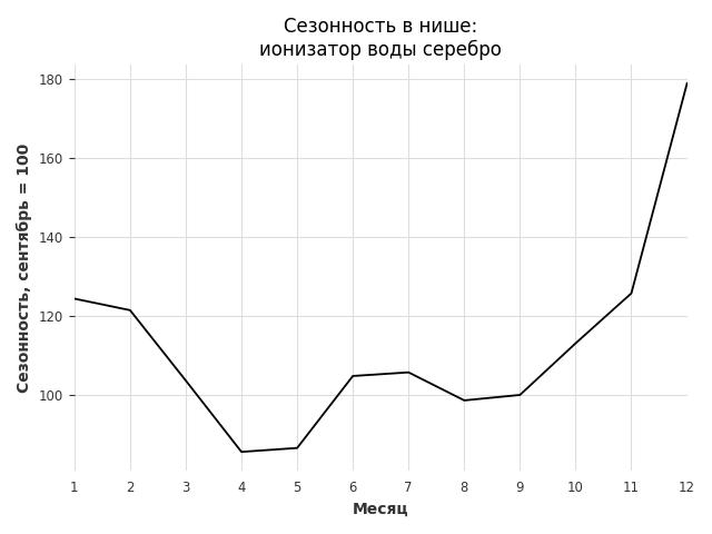Сезонность в нише слабая. Пик сезонных продаж в нише - апрель. В ближайшие месяцы можно ожидать сезонного роста продаж до 27%.