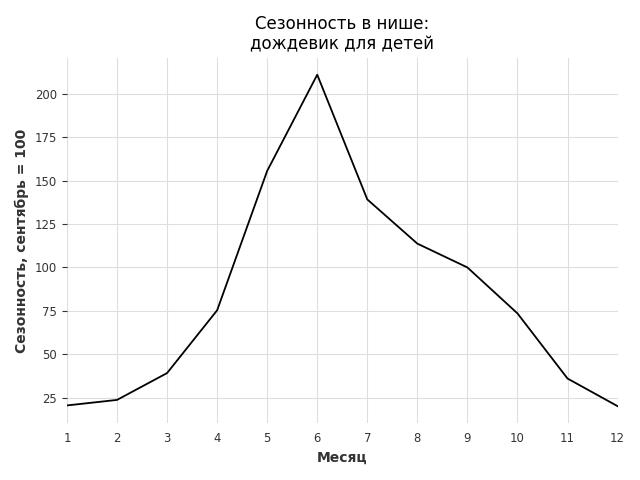 Сезонность в нише сильная. Пик сезонных продаж в нише - июнь. В ближайшие месяцы можно ожидать сезонного спада продаж до 80%.