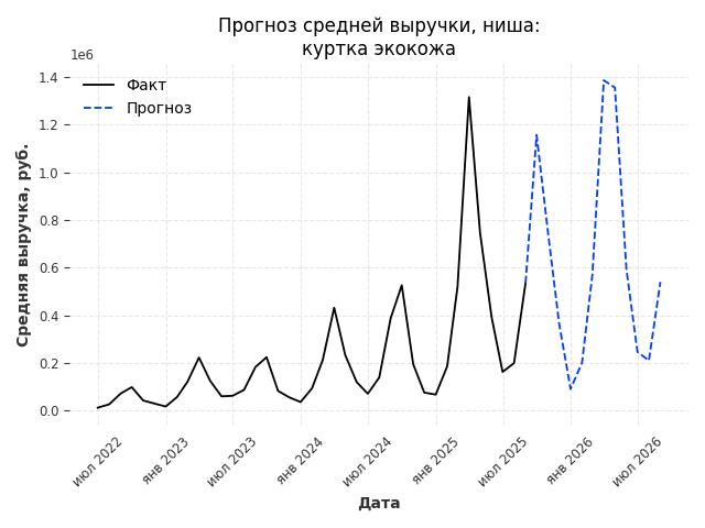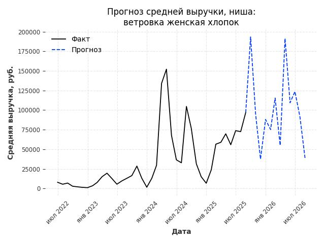 - Прогноз изменения средней выручки: 48006 руб.