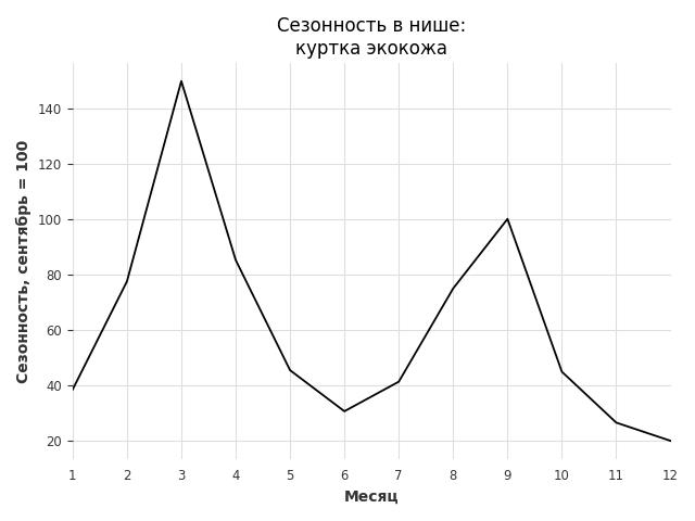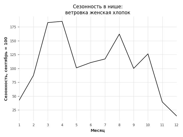 Сезонность в нише сильная. Пик сезонных продаж в нише - март. В ближайшие месяцы можно ожидать сезонного спада продаж до 46%.