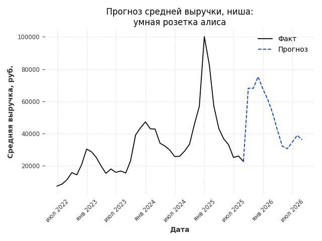 - Прогноз средней выручки в нише на следующие 12 месяцев: 114651 руб./месяц