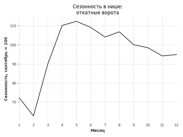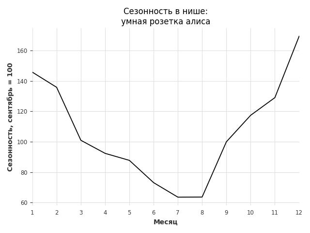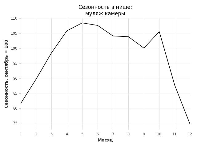 Сезонность в нише средняя. Пик сезонных продаж в нише - декабрь. В ближайшие месяцы можно ожидать сезонного роста продаж до 69%.