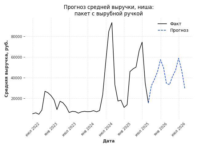 - Прогноз средней выручки на ближайшие 12 месяцев: 42987 руб./месяц