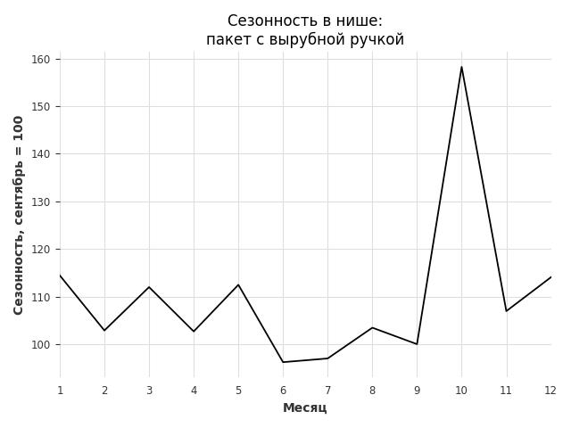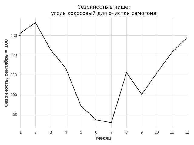Сезонность в нише слабая. Пик сезонных продаж в нише - октябрь. В ближайшие месяцы можно ожидать сезонного роста продаж до 58%.