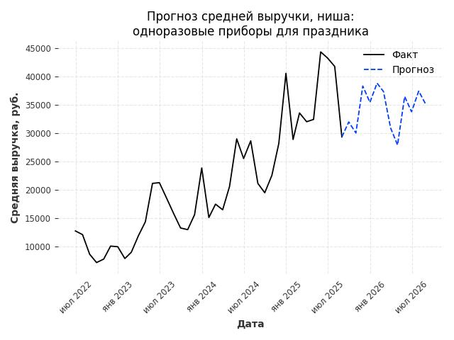 - Прогноз средней выручки в нише на следующие 12 месяцев: 42987 руб./месяц