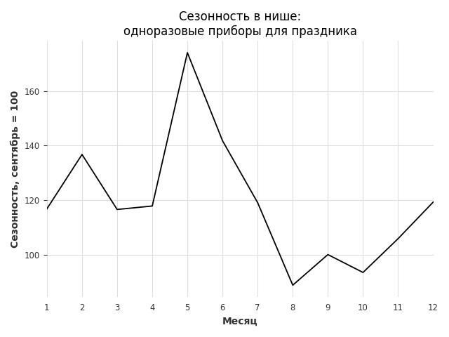 Сезонность в нише слабая. Пик сезонных продаж в нише - февраль. В ближайшие месяцы можно ожидать сезонного роста продаж до 28%.