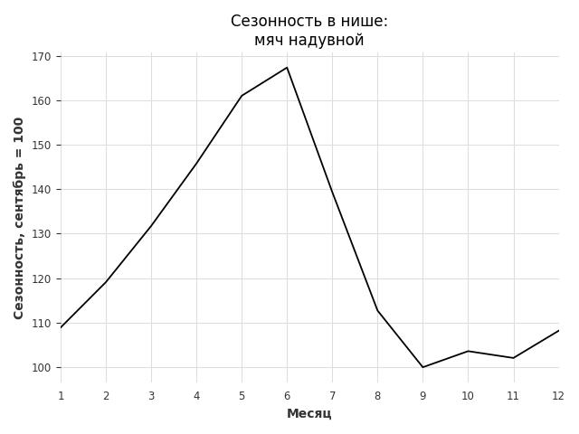 Сезонность в нише слабая. Пик сезонных продаж в нише - июнь. В ближайшие месяцы сезонность не будет заметно влиять на продажи.
