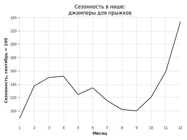 Сезонность в нише средняя. Пик сезонных продаж в нише - декабрь. В ближайшие месяцы можно ожидать сезонного роста продаж до 133%.