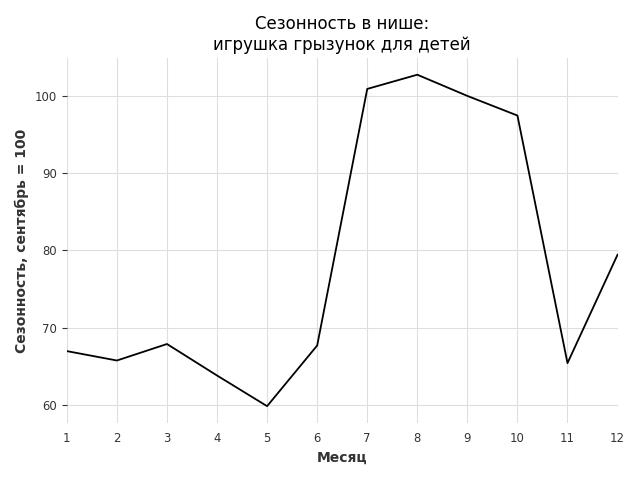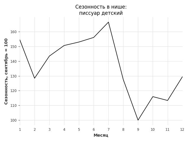Сезонность в нише слабая. Пик сезонных продаж в нише - июль. В ближайшие месяцы можно ожидать сезонного роста продаж до 29%.