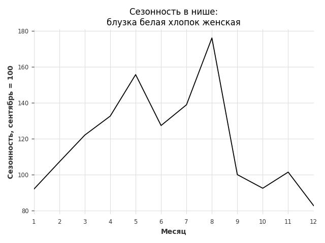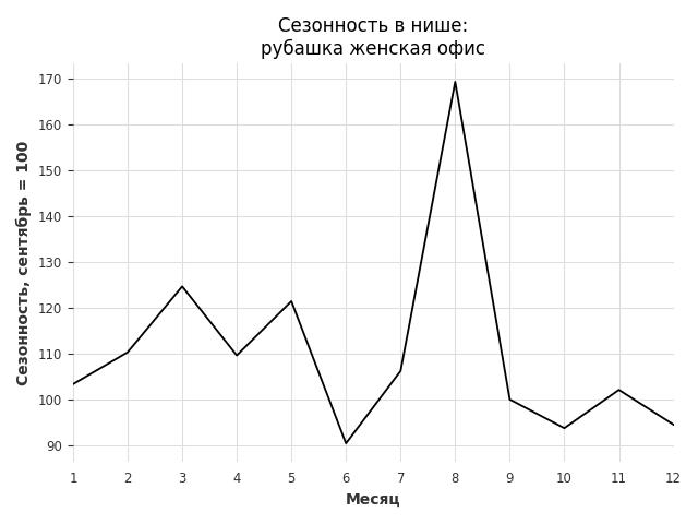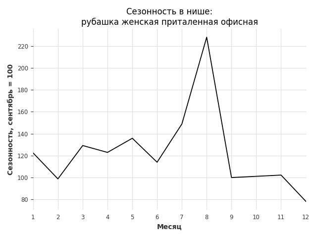Сезонность в нише средняя. Пик сезонных продаж в нише - август. В ближайшие месяцы сезонность не будет заметно влиять на продажи.