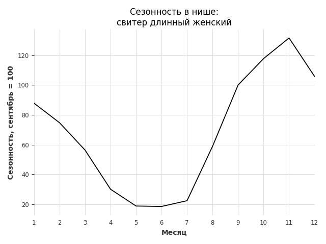 Сезонность в нише сильная. Пик сезонных продаж в нише - ноябрь. В ближайшие месяцы можно ожидать сезонного роста продаж до 31%.