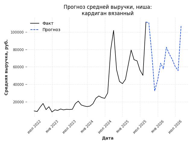 - Прогноз средней выручки на ближайшие 12 месяцев: 76281 руб./месяц