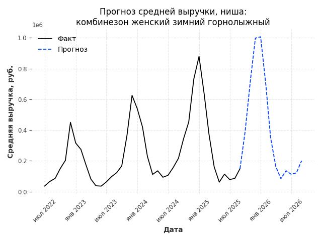 - Прогноз средней выручки в нише на следующие 12 месяцев: 218077 руб./месяц