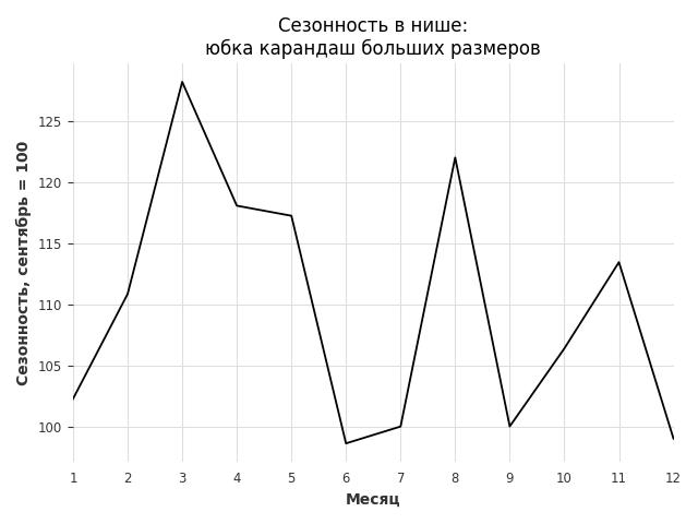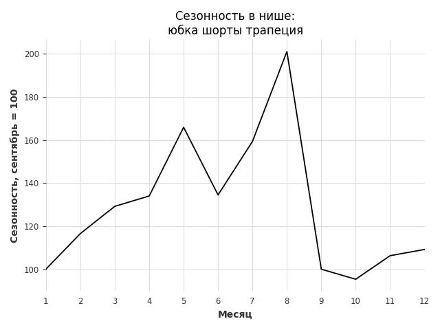 Сезонность в нише средняя. Пик сезонных продаж в нише - август. В ближайшие месяцы сезонность не будет заметно влиять на продажи.