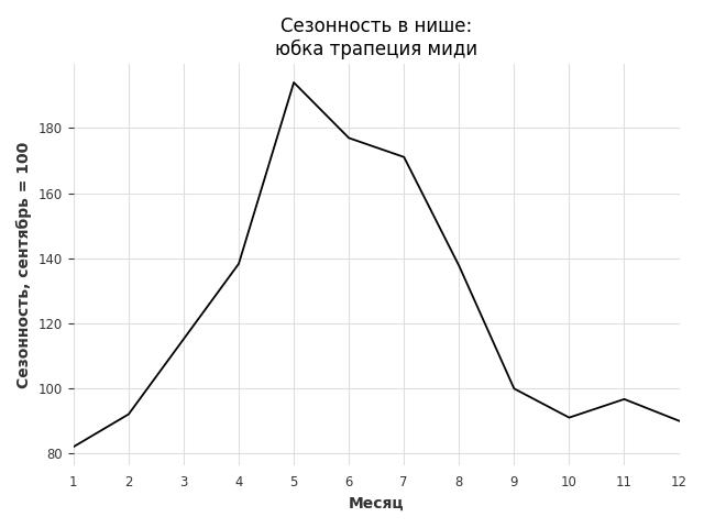 Сезонность в нише средняя. Пик сезонных продаж в нише - май. В ближайшие месяцы сезонность не будет заметно влиять на продажи.