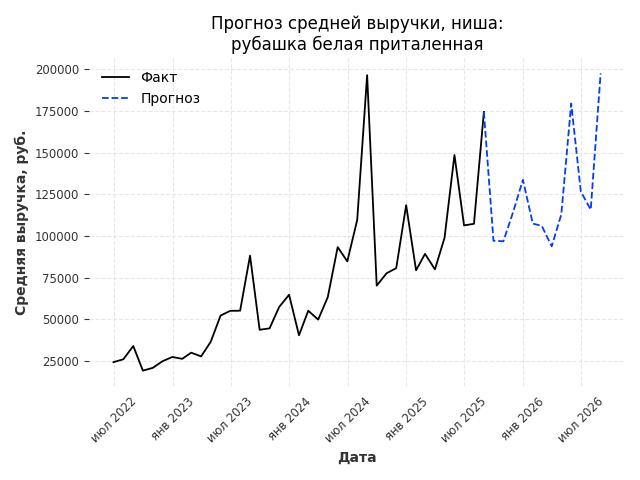 - Прогноз средней выручки в нише на следующие 12 месяцев: 123454 руб./месяц