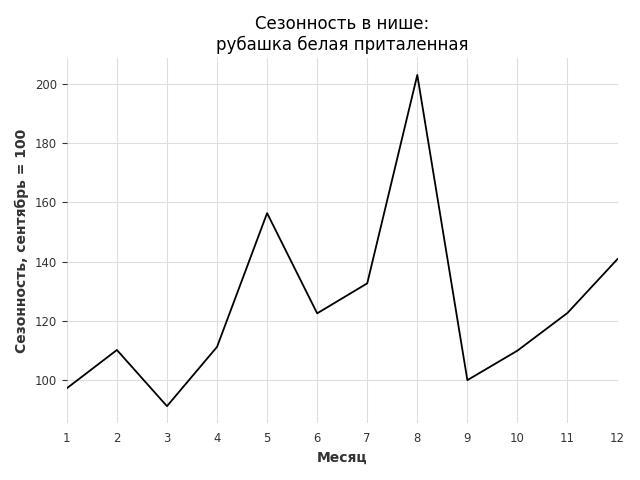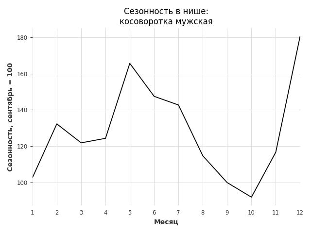 Сезонность в нише слабая. Пик сезонных продаж в нише - декабрь. В ближайшие месяцы можно ожидать сезонного роста продаж до 80%.