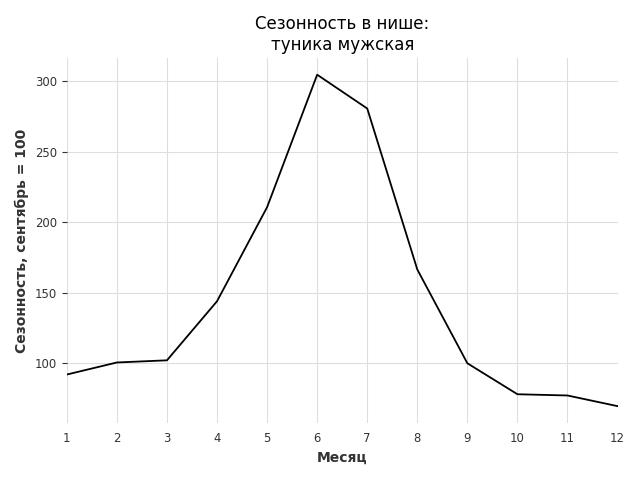 Сезонность в нише сильная. Пик сезонных продаж в нише - июнь. В ближайшие месяцы можно ожидать сезонного спада продаж до 31%.