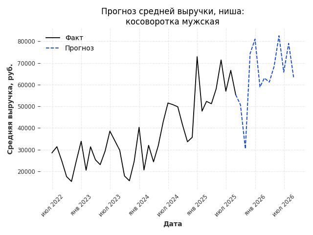 - Прогноз средней выручки в нише на следующие 12 месяцев: 64898 руб./месяц