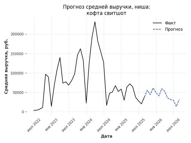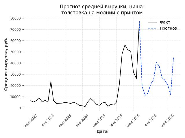 - Прогноз средней выручки в нише на следующие 12 месяцев: 94554 руб./месяц