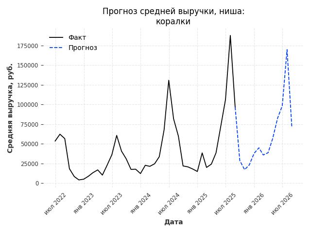 - Прогноз средней выручки в нише на следующие 12 месяцев: 58625 руб./месяц