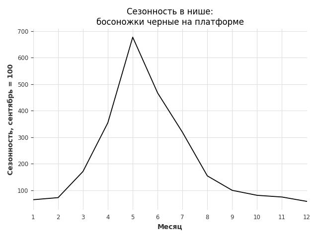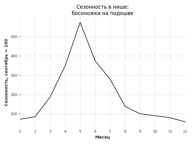 Сезонность в нише сильная. Пик сезонных продаж в нише - май. В ближайшие месяцы можно ожидать сезонного спада продаж до 42%.