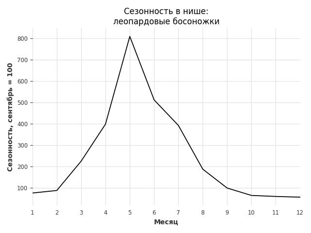 Сезонность в нише сильная. Пик сезонных продаж в нише - май. В ближайшие месяцы можно ожидать сезонного спада продаж до 43%.