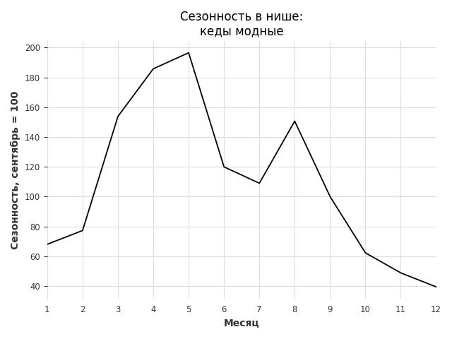 Сезонность в нише средняя. Пик сезонных продаж в нише - август. В ближайшие месяцы можно ожидать сезонного спада продаж до 18%.