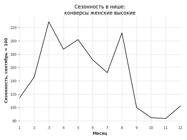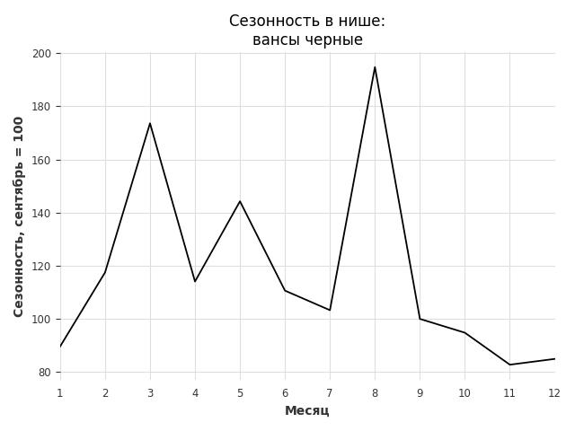 Сезонность в нише средняя. Пик сезонных продаж в нише - март. В ближайшие месяцы сезонность не будет заметно влиять на продажи.