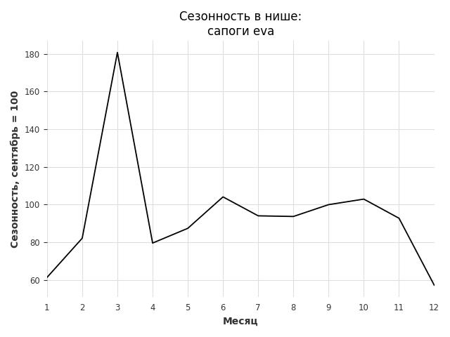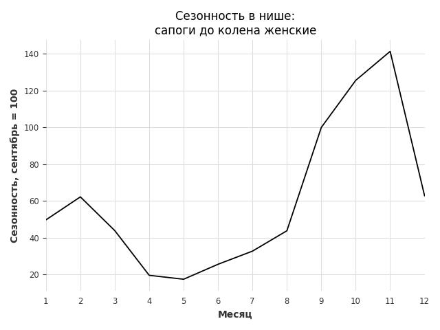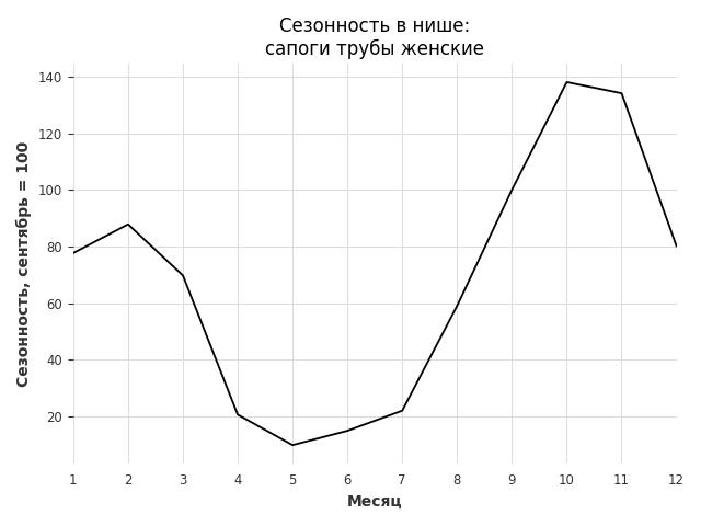 Сезонность в нише сильная. Пик сезонных продаж в нише - октябрь. В ближайшие месяцы можно ожидать сезонного роста продаж до 38%.