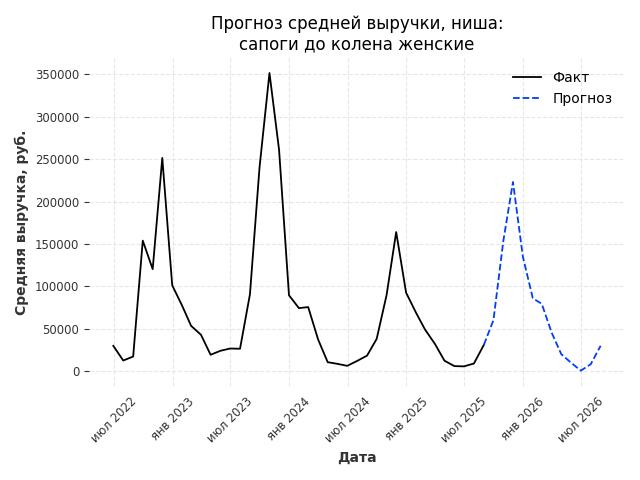 - Прогноз средней выручки на ближайшие 12 месяцев: 70956 руб./месяц