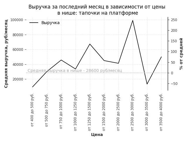 Выручка в нише в зависимости от цены
