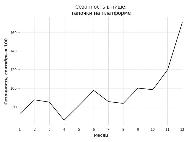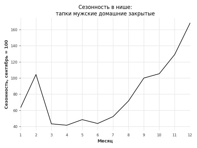 Сезонность в нише сильная. Пик сезонных продаж в нише - декабрь. В ближайшие месяцы можно ожидать сезонного роста продаж до 68%.