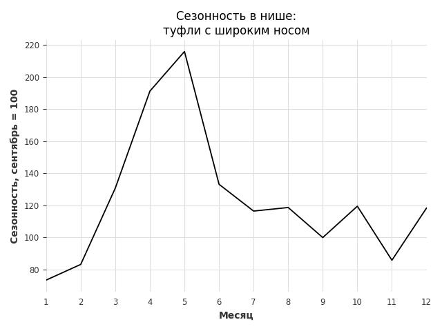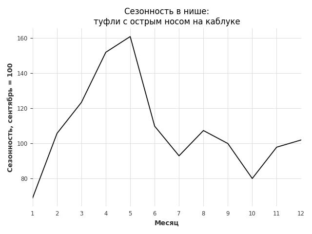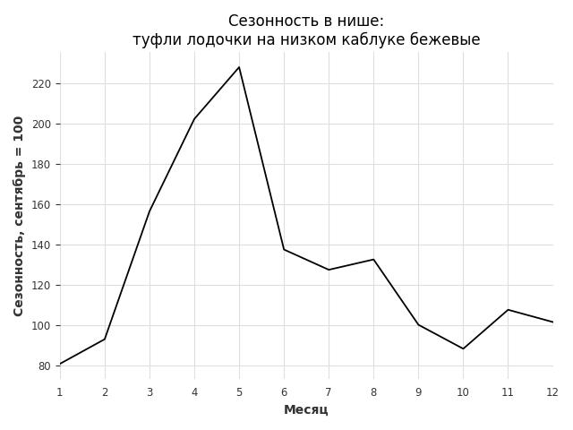 Сезонность в нише средняя. Пик сезонных продаж в нише - май. В ближайшие месяцы сезонность не будет заметно влиять на продажи.