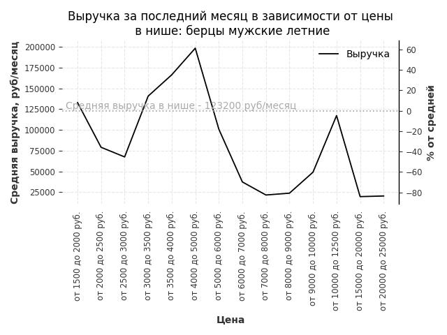 Выручка в нише в зависимости от цены