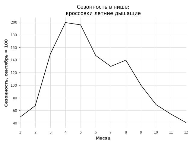 Сезонность в нише сильная. Пик сезонных продаж в нише - апрель. В ближайшие месяцы можно ожидать сезонного спада продаж до 60%.