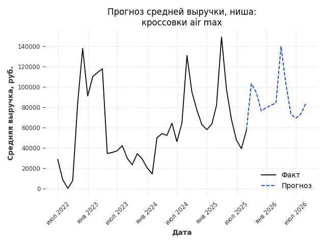 - Прогноз средней выручки в нише на следующие 12 месяцев: 94355 руб./месяц