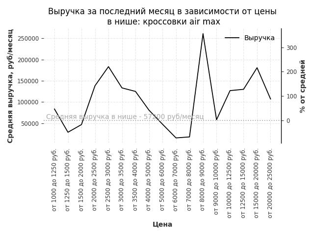 Выручка в нише в зависимости от цены