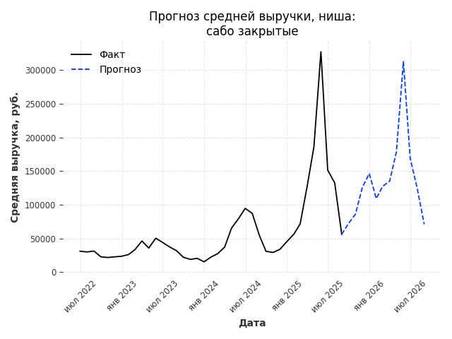 - Прогноз средней выручки на ближайшие 12 месяцев: 220338 руб./месяц