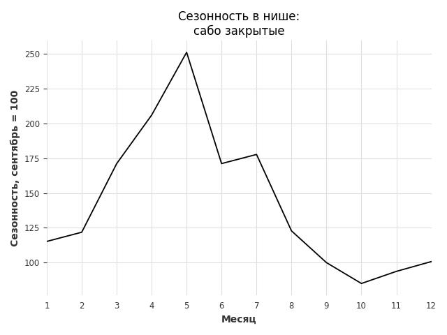 Сезонность в нише сильная. Пик сезонных продаж в нише - май. В ближайшие месяцы можно ожидать сезонного спада продаж до 33%.