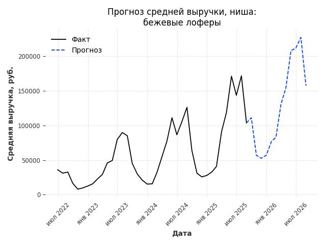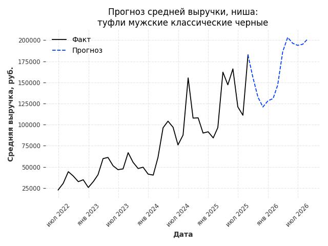- Прогноз изменения средней выручки: 28142 руб.